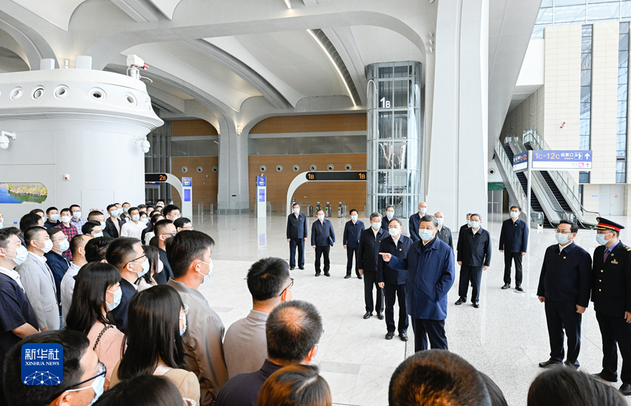5月10日,中共中央總書記、國家主席、中央軍委主席習近平在河北省雄安新區考察,并主持召開標準質量推進雄安新區建設座談會。這是10日上午,習近平在雄安站考察。新華社記者 李學仁 攝